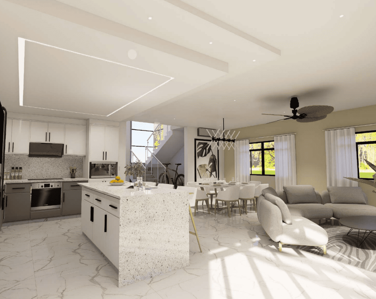 Nuestro modelo PalmaReal ofrece un diseño arquitectónico contemporáneo con una distribución enfocada en la amplitud, la estética y el confort. Integra espacios sociales amplios, excelente iluminación natural y una selección de materiales de calidad premium que elevan el nivel del proyecto. Sus acabados han sido cuidadosamente elegidos para complementar un estilo elegante, funcional y atemporal, ideal para quienes buscan distinción y alto valor residencial en La Romana.
